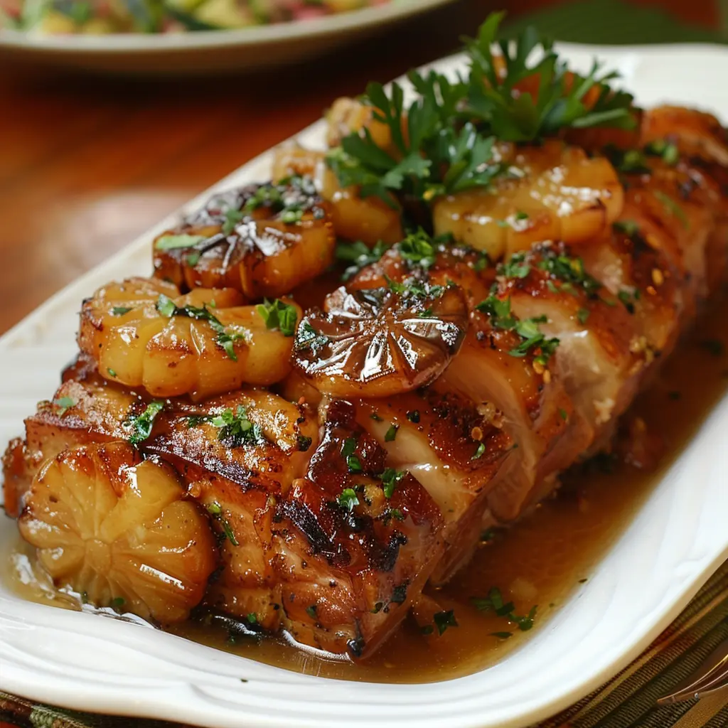 Te encantará esta receta por su equilibrio perfecto de sabores: las jugosas chuletas de cerdo, la refrescante piña y la rica salsa se combinan para crear una comida que es a la vez satisfactoria y deliciosa. Es un excelente plato para servir en una cena o para una comida familiar especial.