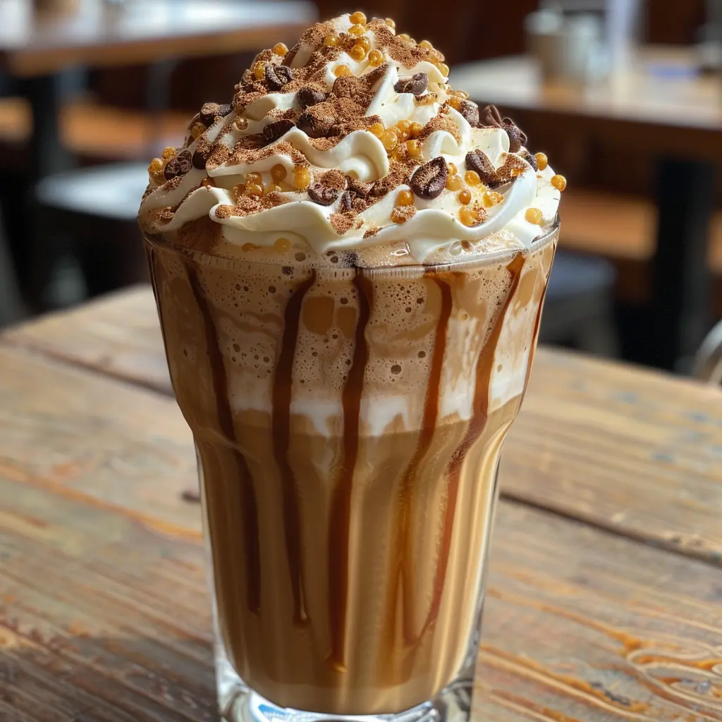 Descripción: Esta receta de frappé de café es una deliciosa mezcla de café negro frío, leche y azúcar, cubierta con crema batida y una pizca de café en polvo. Es un capricho refrescante y delicioso, perfecto para un día caluroso de verano o para cualquier momento en el que necesites un estimulante.