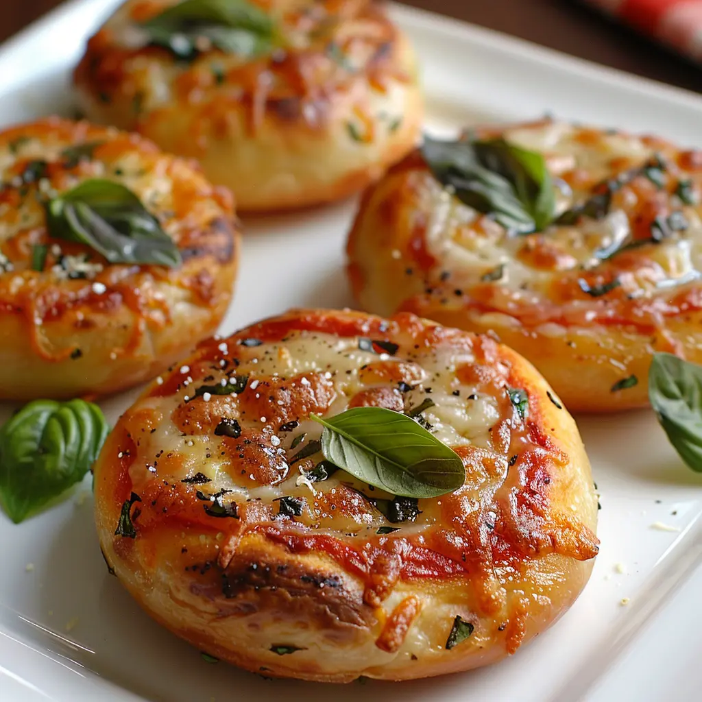 Sugerencias de presentación: Sirve las mini pizzas caseras calientes y recién salidas del horno. Puedes personalizar cada mini pizza con diferentes ingredientes para satisfacer los gustos de todos.