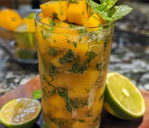 Descripción: Este refrescante mojito de mango sin alcohol es una combinación perfecta de mango dulce, lima picante y menta fresca, que crea un paraíso tropical en un vaso.