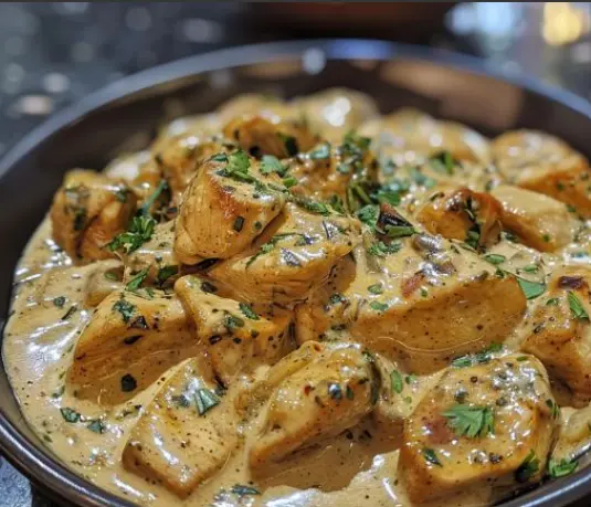 Esta sabrosa receta casera de pollo con ajo es imprescindible para los amantes del ajo. Los tiernos trozos de pollo cocinados con ajo aromático, vino blanco y caldo de pollo crean un plato reconfortante y delicioso.