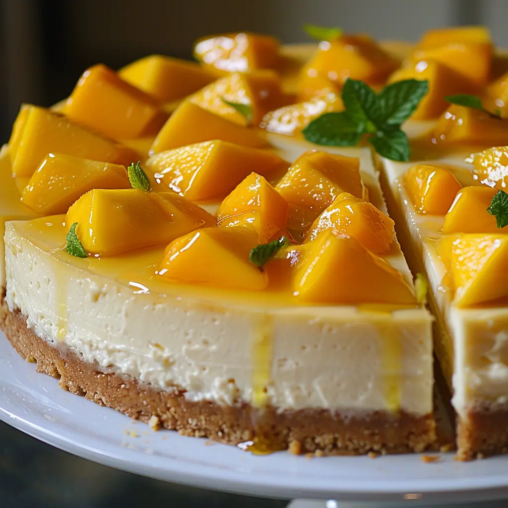 Esta deliciosa tarta de queso combina los sabores tropicales del mango y la frescura ácida del limón en un postre decadente que seguro impresionará a tu paladar.