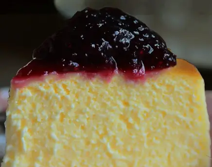 Esta esponjosa tarta de queso con mermelada de moras ofrece una versión deliciosa de la tarta de queso tradicional. Su textura ligera y esponjosa, combinada con el dulce toque ácido de la mermelada de moras, la convierte en un postre verdaderamente especial. Es más fácil de preparar que las tartas de queso tradicionales, ya que no requiere baño maría, y su textura única sin duda te impresionará.